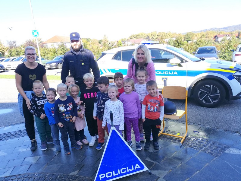 Pred osnovno šolo smo si ogledali tudi policijsko vozilo.