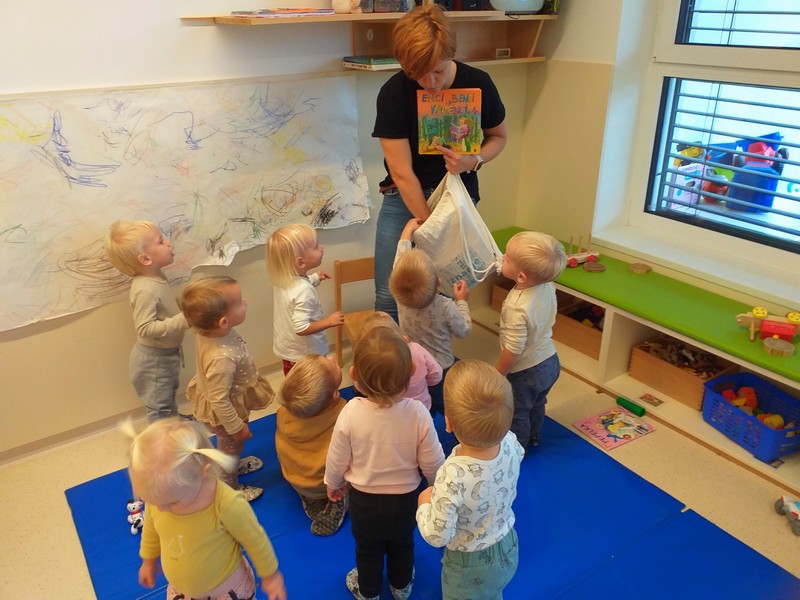 Začeli smo ga s prihodom naše ljubljene maskote, zajčkom Tinetom in bralnim nahrbtnikom.