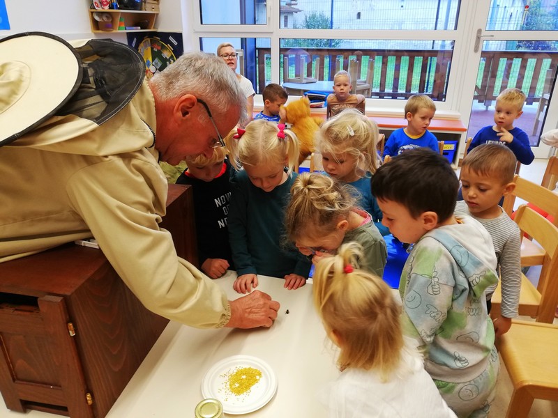 Obiskal nas je tudi pravi čebelar in nam pokazal svojo bogato zbirko pripomočkov ter nam povedal veliko zanimivega o življenju čebel.