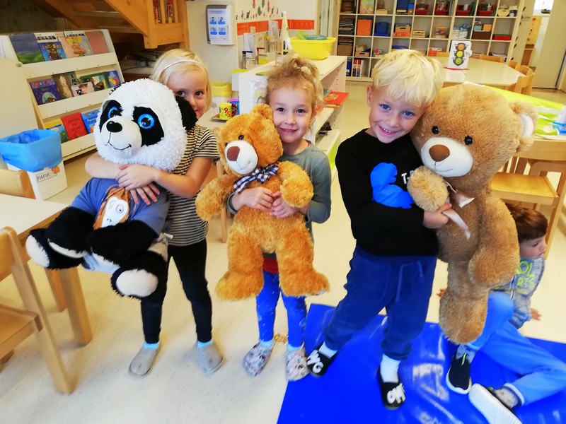 ... in tako je končno napočil trenutek, ko je med nas prišel prikupni medvedek Uhec, ki je postala naša maskota oddelka. Zares smo se ga razveselili in ga z veseljem povabili med nas. Verjamemo, da mu bodo vikendi polni, novih dogodivščin.