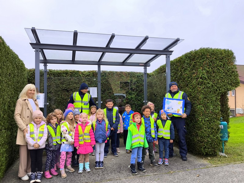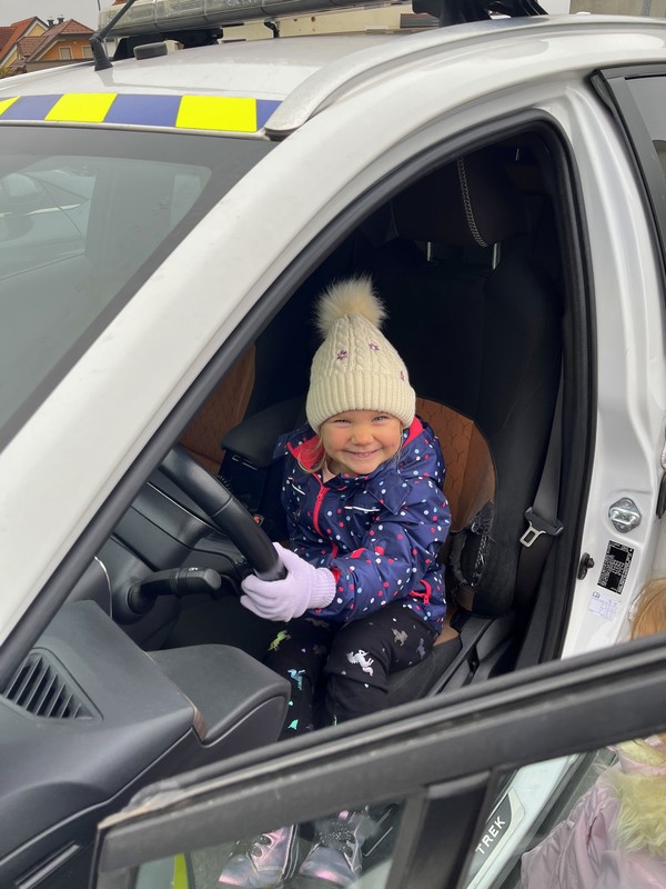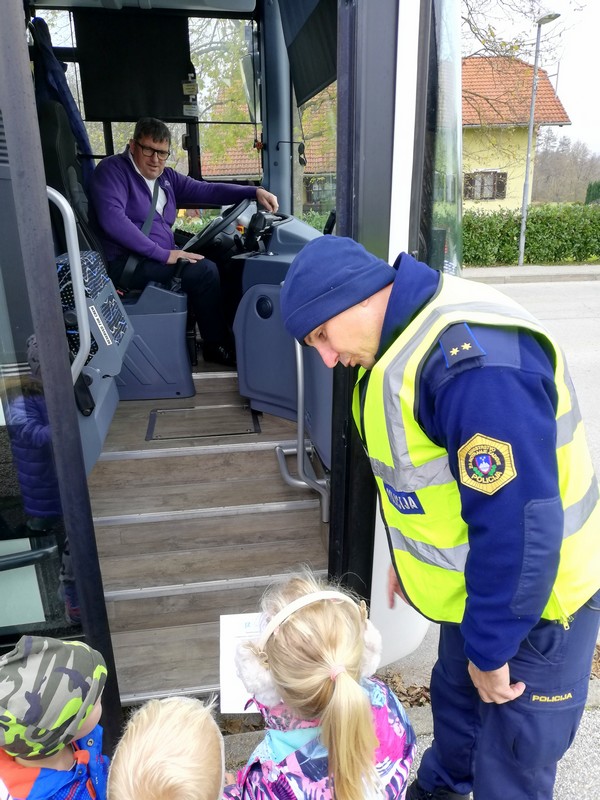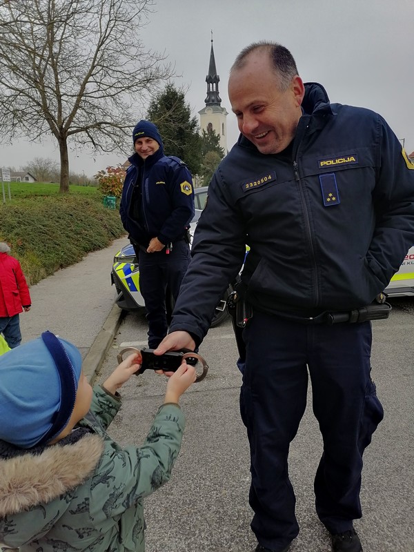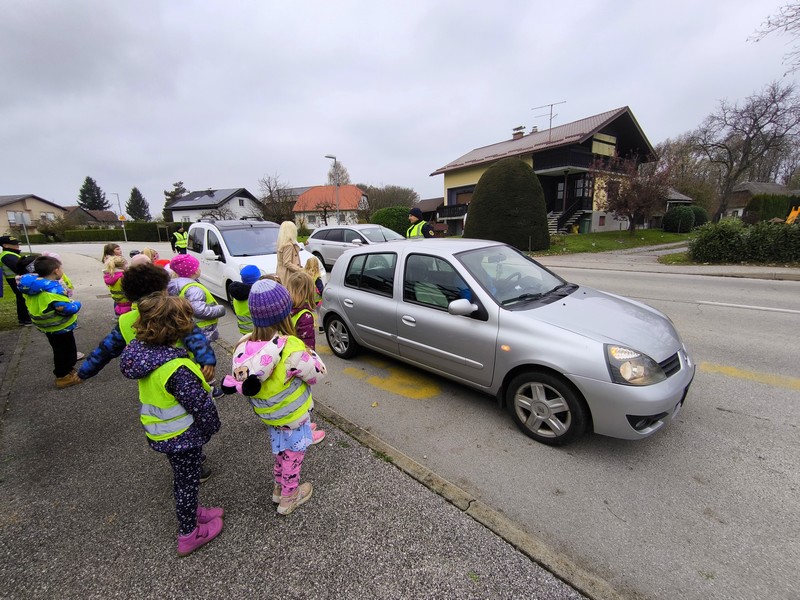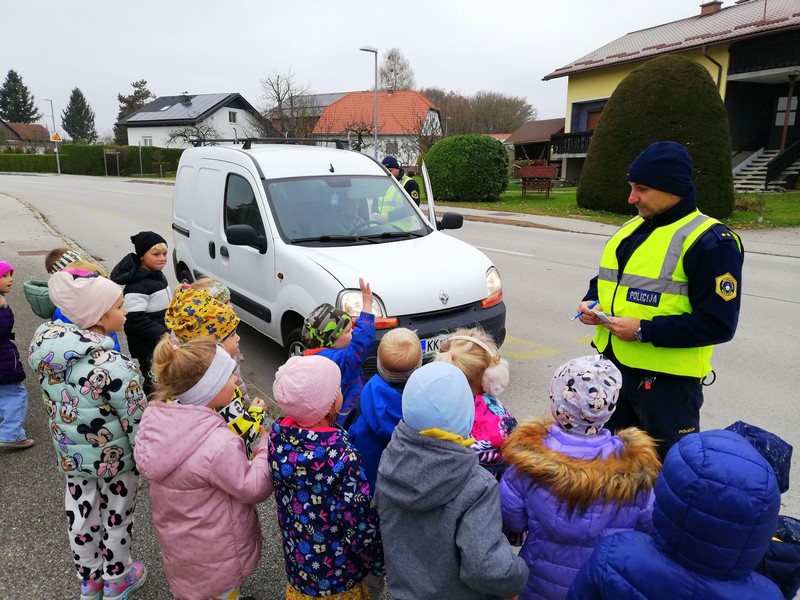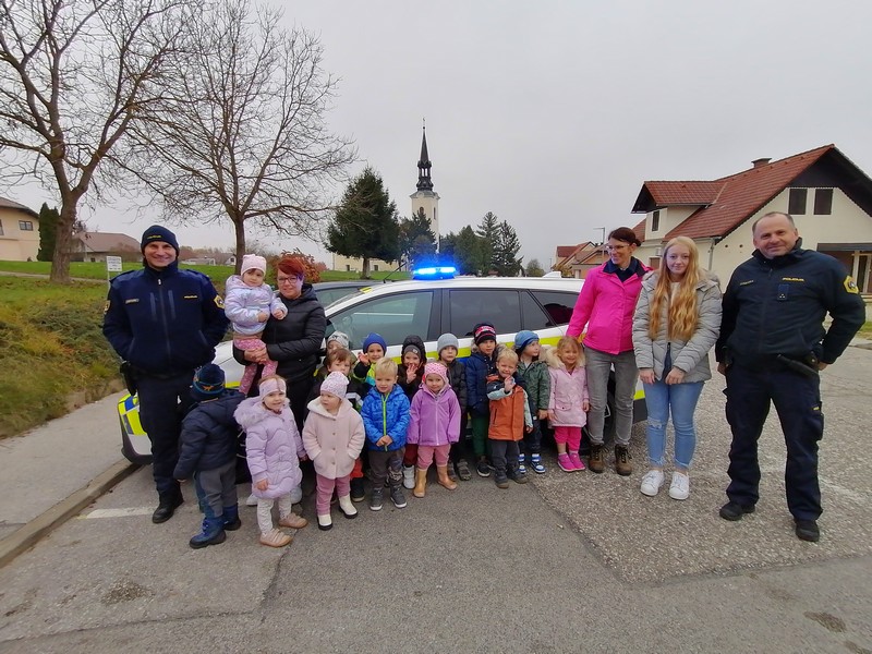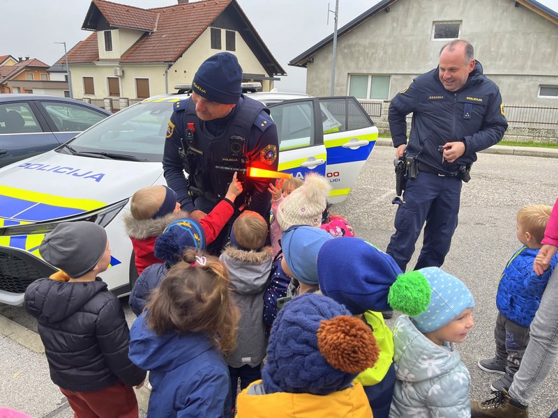 Otroci iz skupine Plezalčki in Cepetavčki so spoznali poklic policista, kaj je njegovo delo, kakšna pravila imamo na cesti in si skupaj ogledali policijske pripomočke. Otroci so imeli možnost, da so prižgali sirene in pa si ogledali policijsko patruljo.