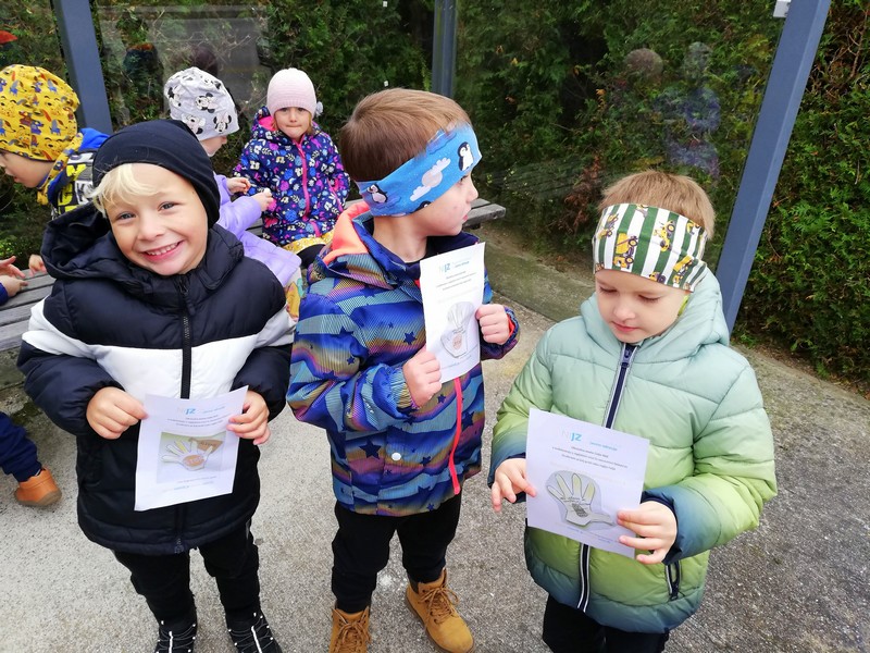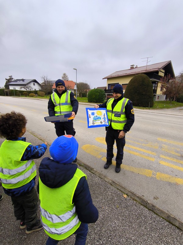 Starejši otroci Navihančki in leto mlajši Igralčki pa so se udeležili ulične akcije s policistoma, v okviru tedenske akcije NIJZ OTROCI ZA VARNOST V PROMETU (na Martinovo).