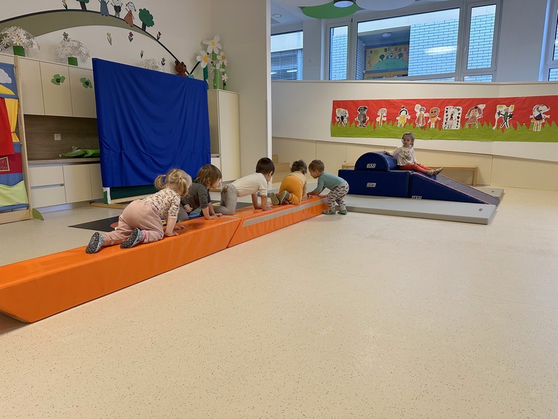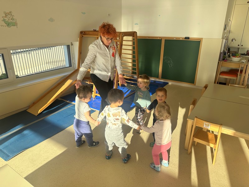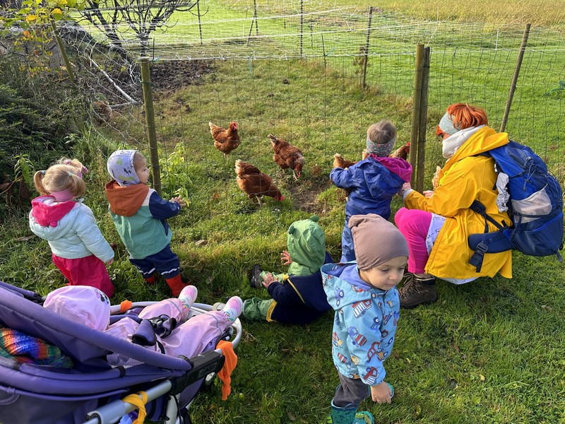 Odpravimo se na sprehod, se poigramo na vrtčevskem igrišču in preizkušamo igrala, največkrat pa nas pot odpelje do Banove hoste. Tam se otroci neizmerno radi poigrajo in raziskujejo nove kotičke, ki nam jih ponuja gozd. S sabo vzamemo malico, ki jo ob prihodu tudi pojemo.