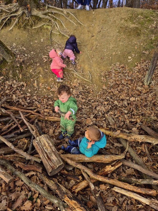 Veliko smo plesali, se igrali, peli, navajali na umirjanje in masažo z žogicami, raziskovali in spoznavali nove igrače, se odpravili na svež zrak v gozd in prvič tudi poprijeli za čopiče in lepilo. V skupino smo dobili tudi novo prijateljico Nino, ki se na nas še privaja, mi pa smo jo zelo lepo sprejeli.