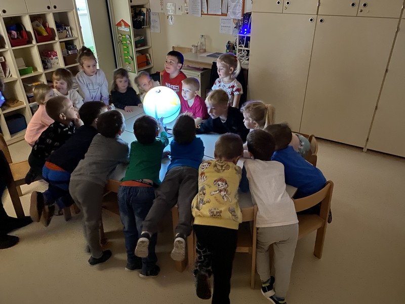 Nekega januarskega dne pa smo se vsi skupaj odločili, da bomo odšli kar potovat po svetu. V igralnici nas je pričakal globus, zavrteli smo ga na vso moč in se ustavili v deželi, kjer je polno snega in ledu……. V deželo Eskimov in polarnih živali. Sedaj pa nas čaka veliko igre in raziskovanja, saj komaj čakamo, da vam bomo predstavili delček tega v naslednjih novičkah.