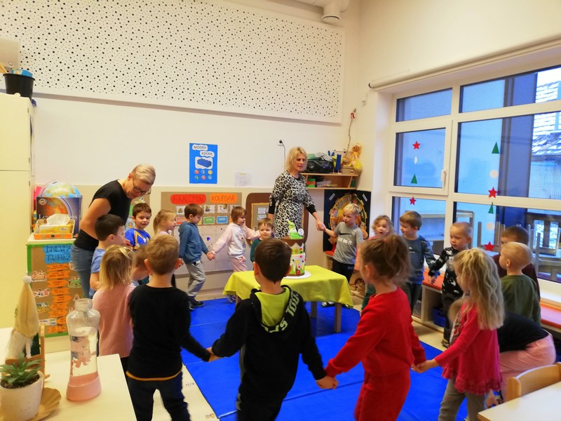 Igralčki z vzgojiteljico Natašo in Heidi