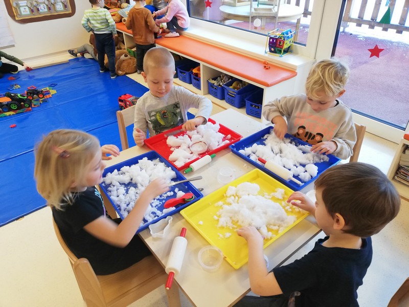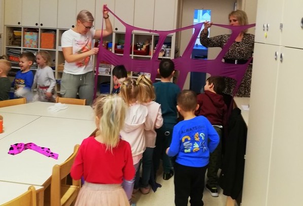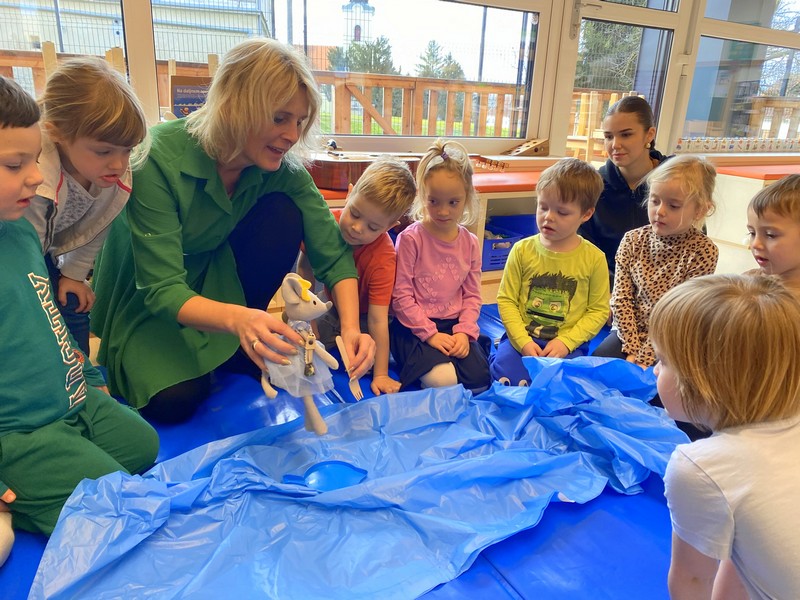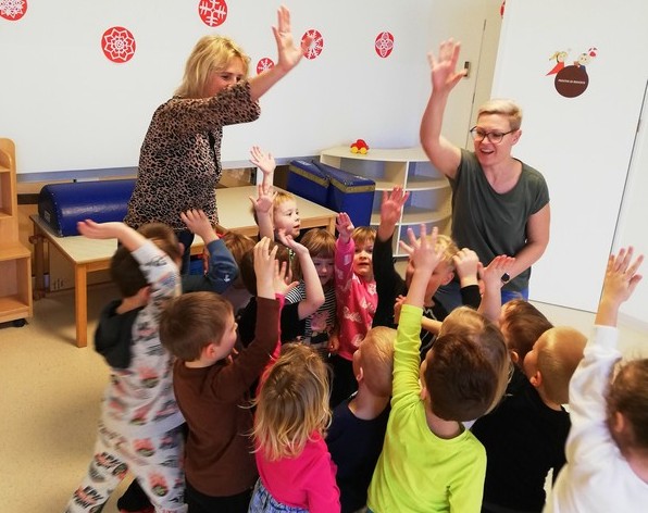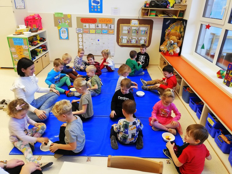 Igralčki z vzgojiteljico Natašo in Heidi