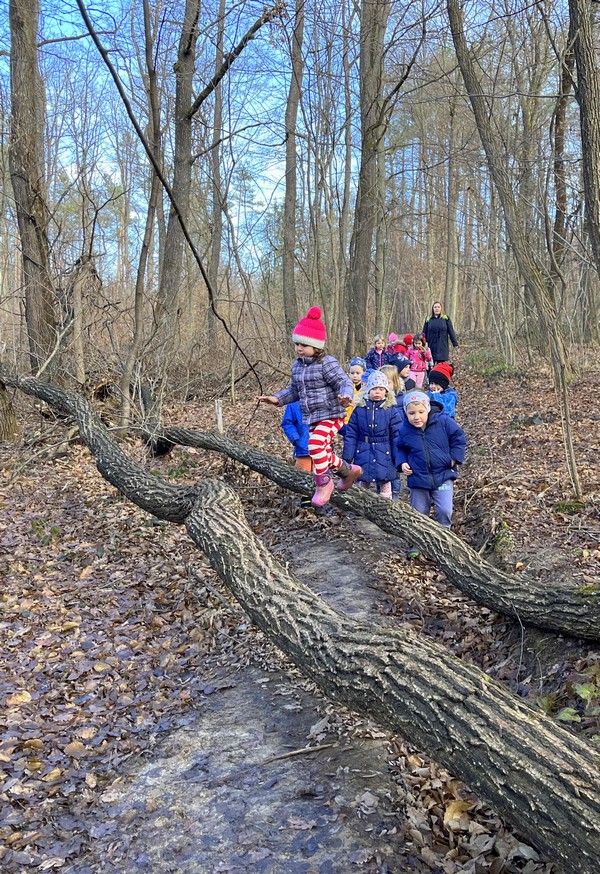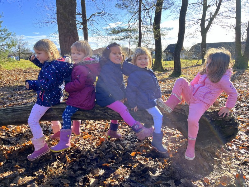 Ker se vključujemo v gozdni vrtec, smo vsak lepši dan izkoristili za sprehod do bližnjega gozda. Tam smo čas izkoristili za raziskovanje in izdelavo svojega velikega gnezda. Otroci so s skupno pomočjo in "močnimi rokami" nosili velike, težke veje in jih postavili v gnezdo. Sončni dan smo izkoristili tudi za daljši sprehod po gozdu, kjer smo našli primerno mesto za igro in nove površine za plezanje. Med potjo smo se srečevali z ovirami, ki jih cepetavčki zdaj že brez težav premagajo.