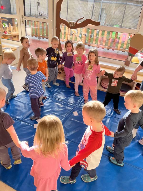 Tako smo ustvarili svojo igro spomina, pri kateri smo vse ptice poimenovali in poiskali njihove pare. Spominske kartice smo nato porabili tudi v plesni igri "Poišči svoj par", kjer smo pare iskali v krogu med petjem in glasbo o pticah. Sproti smo se tako naučili pesem Pleši, pleši črni kos, katero spremljamo tudi s plesnimi koraki.