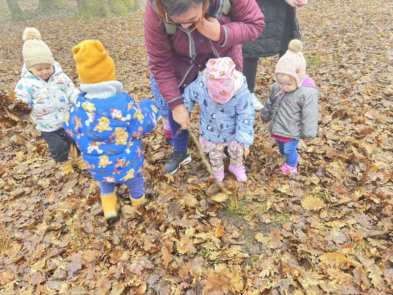 Otroci so z zanimanjem in začudenjem kukali v luknje v deblih ali tleh, kar je burilo njihovo domišljijo in radovednost. Razkrivali so tla, zastrta z listjem in kot pravi mali naravoslovci opazili prve znake prebujanja pomladi – drobne poganjke na želodih.