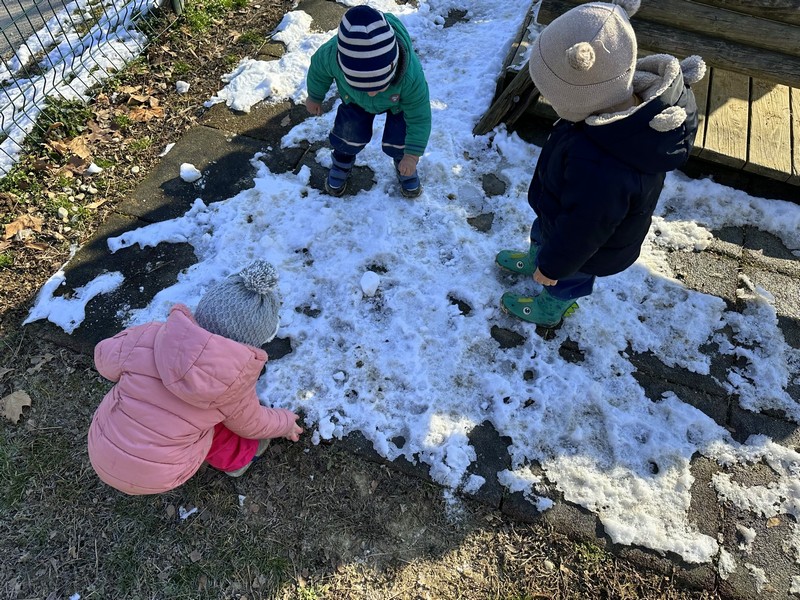 V senci smo ulovili še zadnji sneg in led, ki je v naših rokah kar čudežno izginil, le kako je to mogoče? Hehe, šalo na stran. Veselo smo korakali okoli Artič na sprehode in se v bivanju na prostem sprostili tudi na naši terasi, igrišču ali v bližnjem gozdu.