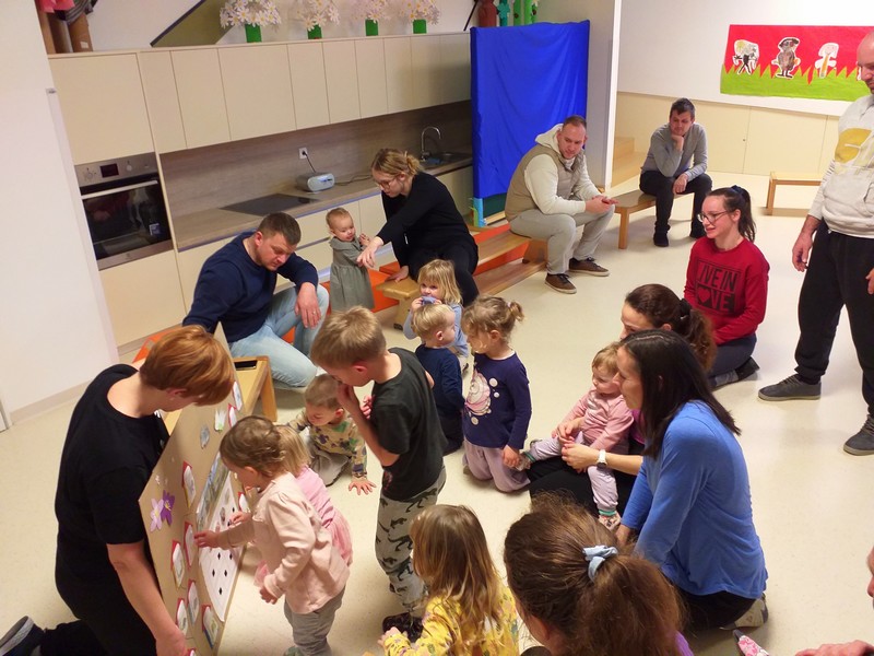 Čeprav se je ozračje v mesecu februarju zunaj za nekaj dni precej ohladilo, se je v naši igralnici razlegal smeh, a občasno tudi jok. Naši srčki so hitreje bili, ko smo se podili po skupnem prostoru, se skrivali na klančini in spuščali po toboganu. Še večje veselje je nastalo, ko smo to pustolovščino delili z našimi starši na popoldanskem druženju v skupnem prostoru vrtca. Skozi uvodno rajanje, označitvijo prisotnosti, razgibavanje, vadbeni poligon in socialno igro nas je preplavil pravi čustveni vrtiljak.