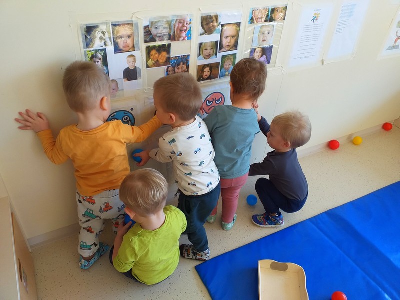 Že ob jutranjem prihodu v vrtec nekateri otroci veselo pritečejo k igri, drugi potrebujejo topel objem, da lažje premagajo žalost ob slovesu od staršev. Nato zapojemo »Ko si srečen« in ljudsko »Če si slabe volje« ter zarajamo. Čez dan skupaj pregledujemo fotografije in slikanice o različnih čustvih ter jih povezujemo z osnovnimi barvami (rumena, modra, rdeča), kar nam pomaga razumeti in izražati svoje občutke. Radi zavrtimo kazalec na semaforju čustev, kjer označimo svoje počutje ali prirejamo barvne žogice pod obraze »smeškote«.