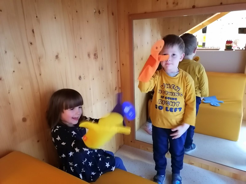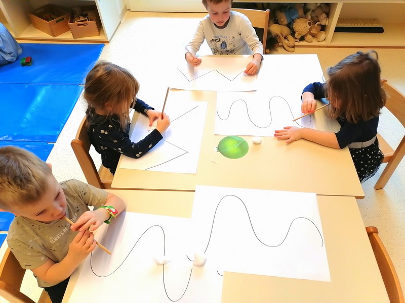 Ker smo praznovali slovenski kulturni praznik, smo veliko peli, se učili izštevanke in deklamacije, se igrali z lutkami ter pripovedovali zgodbe. Ob instrumentalni glasbi smo se sproščali in ustvarjali, pri tem pa urili tudi matematične spretnosti - prirejali, šteli in preizkušali različna zaporedja.