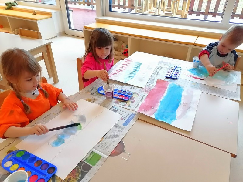 Najprej smo se posvetili naši domovini - spoznali in risali smo slovensko zastavo ter se pogovarjali o njenih barvah in pomenu.