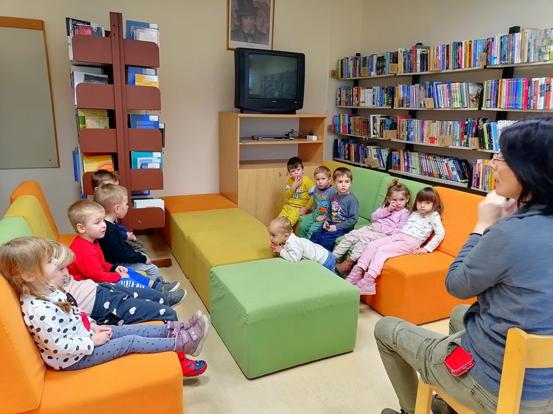 Obiskali smo šolsko knjižnico, kjer smo raziskovali knjige in prisluhnili zgodbam. Poseben obisk pa nas je zelo razveselil, saj je prišla mamica enega izmed naših otrok in nam prebrala čudovito pravljico, ki nas je popeljala v svet domišljije in ustvarjanja.