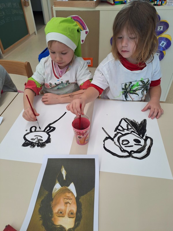 Februar je mesec kulture, zato smo v naši skupini izvajali različne dejavnosti posvečene slovenskemu kulturnemu prazniku. Otroci so risali portret Prešerna z ogljem in črno tempera barvo, na katerega so kasneje naredili še okvir iz papirja. Nastala so čudovita umetniška dela, ki krasijo našo likovno galerijo in panoje na vhodu vrtca. Poskusili smo pisati in risati s peresom. Zelo hitro smo ugotovili, da je veliko lažje držati v roki pisala, kot jih imamo na razpolago danes.