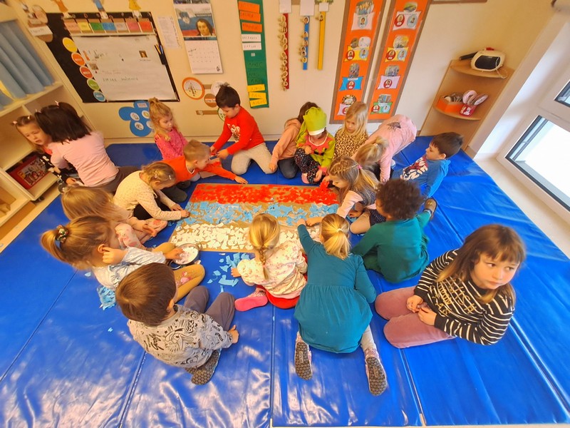 Ker smo v mesecu februarju posebno pozornost namenili lepemu vedenju, uporabi lepih besed, strpnosti in prijateljstvu, se je z nami v skupini vsak dan igral Škratek Prijateljček. Od kje je prišel, pa naj ostane skrivnost,…Imel je zelo pomembno nalogo, saj je vse otroke opazoval, kaj počnejo. Vedno vidi, če nekdo naredi nekaj lepega. Vidi, ko drugim posodiš igračo. Vidi, kako drugega povabiš v igro. Vidi, kako pomagaš, si prijazen do drugih,.. Če ni bilo vse v najlepšem redu, je na strpen in prijazen način rešil težavico.