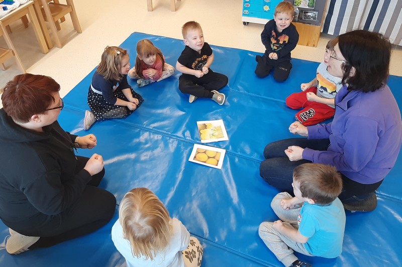 Ker imajo otroci zelo radi svoje mehke plišaste igrače, so jih NAVIHANČKI prinesli v vrtec, da so se pridružile pri igrici Dihalni prijateljček. Igrače so položili na njihove trebuščke, skupaj z njimi počasi in globoki dihali, se smejali in kašljali ter pri tem opazovali gibanje igračke. Ker se že dobro zavedajo svojega nadzorovanega dihanja, so poskusili tudi s tehniko dihanja s prsti. Kazalec na roki je imel pomembno nalogo, saj je obrisoval prste na drugi dlani, ob tem pa so počasi vdihnili, zadržali dih in izdihnili.
