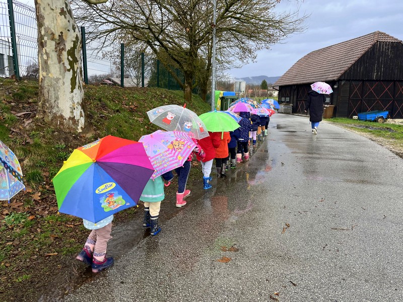 Ven smo se odpravili v vseh vremenskih pojavih, ker so nam starši pripravili pravilno opremo, da se lahko igramo tako med dežjem, kot po blatu.