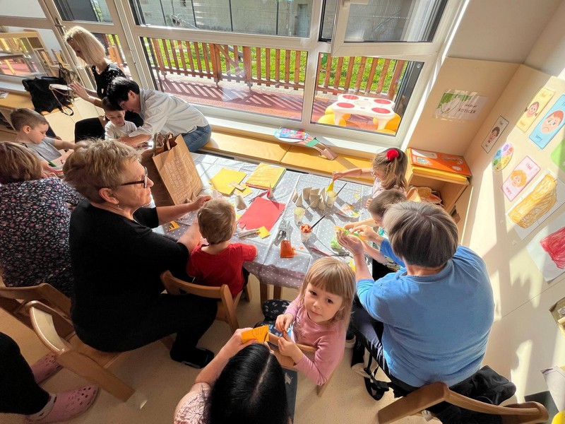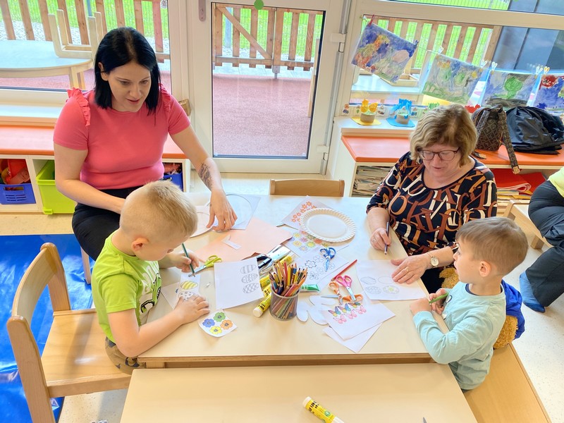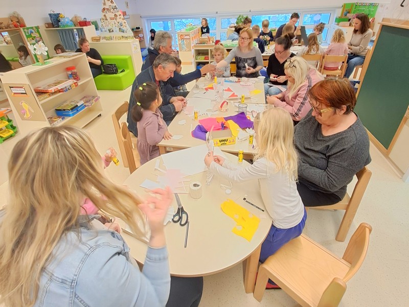 Omizje v igralnici Ringarajčkov pa je postalo kar pretesno, ko so se ustvarjanja lotile babice, mamice, tete in atiji. Izdelali so zajčke iz lončkov in piščančke iz papirnatih tulcev. Čeprav so se razveselili čokoladnih jajčkov, ki so pristali v lončkih, so bile solze večje ob odhodu babic in mamic domov, a so se kaj kmalu posušile, ko so se zaigrali na terasi igralnice.