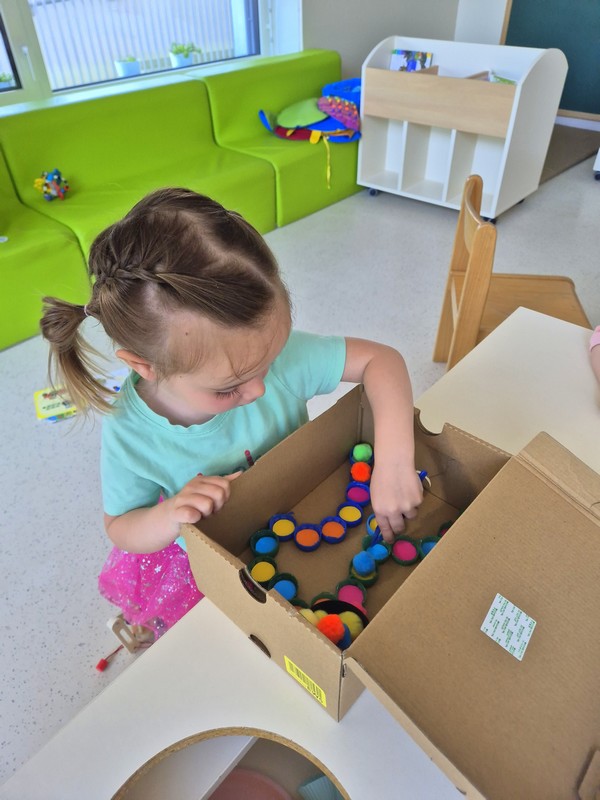 V igralnici smo pripravili kotiček za miselne igre – sestavljanke, enostavne didaktične igrače in razvrščanje predmetov po barvah in velikosti. Otroci so z veseljem sodelovali, se učili potrpežljivosti, osredotočenosti in razvijali svoje fine motorične spretnosti.