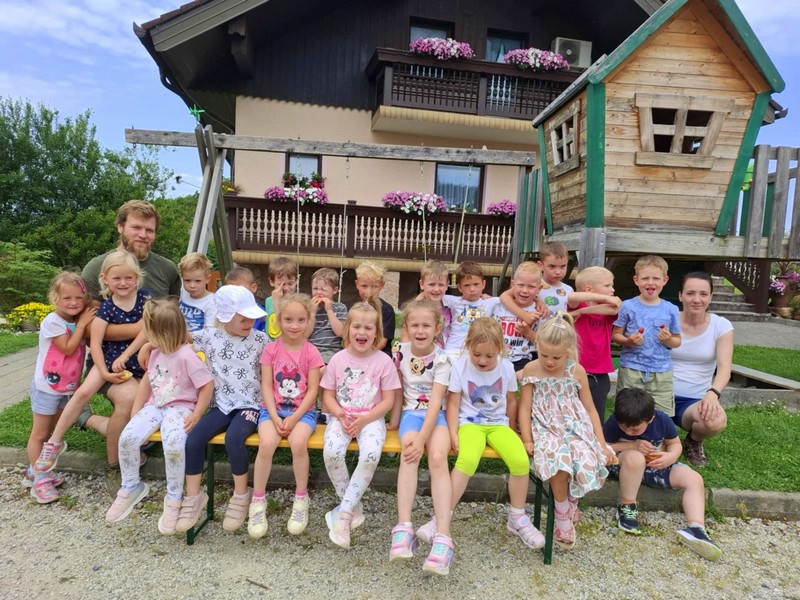 Ringarajčki so se podali na krajši pohod po gozdu, saj je za njih že podvig, da pridejo tja in nazaj v vrtec. Seveda so si vmes malo oddahnili na klopcah, vendar jim ni zmanjkalo energije, saj so se povzpeli v krmilnico, kjer se srnice trenutno ne prehranjujejo. Če srnice živijo v gozdu, konji živijo v hlevih, na kmetiji. Naprej od krmilnice, pa so Navihančki nadaljevali pot do konjev, na poti nazaj, pa so se ustavili v njihovi gozdni igralnici, kjer so ponosno predstavili njihov škratkov kotiček.