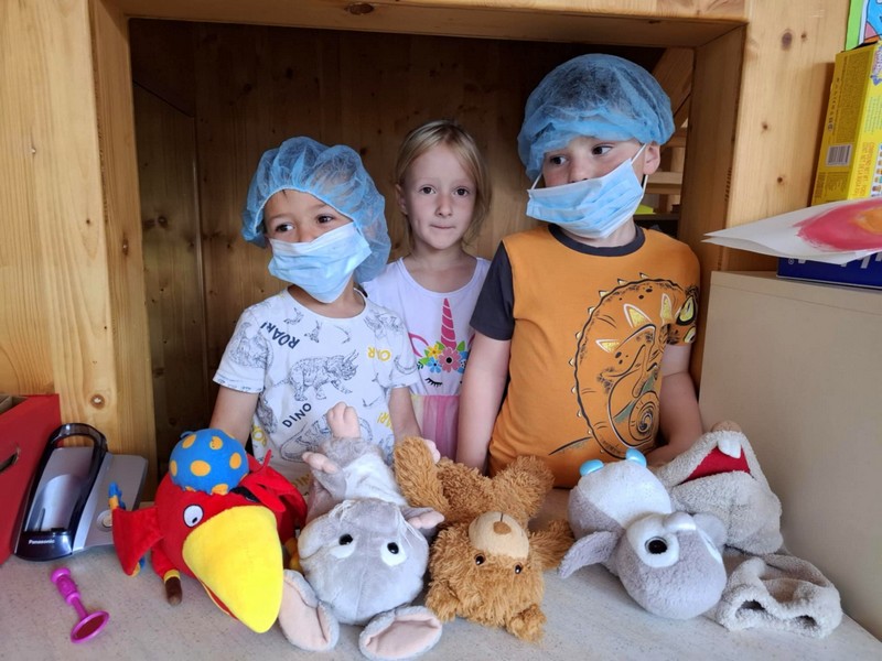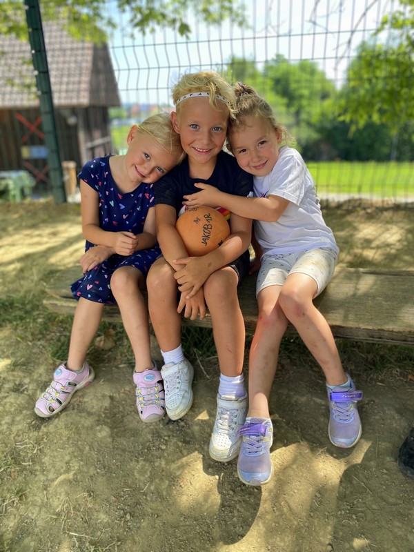 Igralčki z vzgojiteljicama Natašo in Heidi