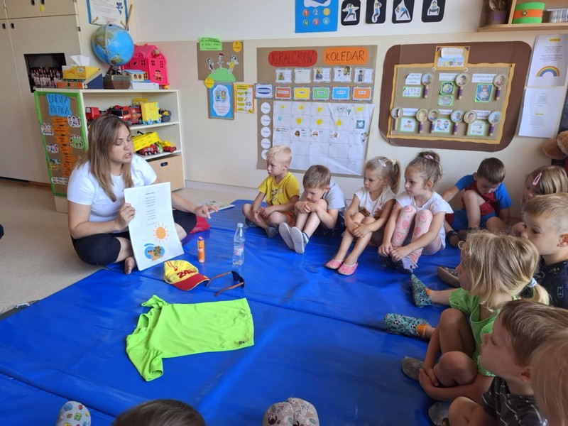 Obiskali sta nas tudi medicinski sestri iz Zdravstvenega doma Brežice. Poučili sta nas o pomembnosti zaščite pred sončnimi žarki ter o pravilni higieni zob. Z veseljem smo sodelovali, poslušali in se veliko novega naučili.