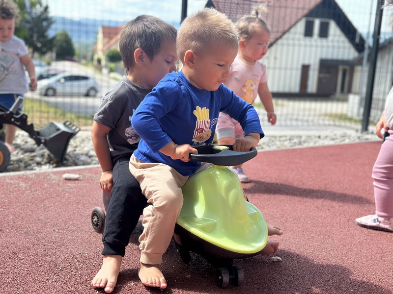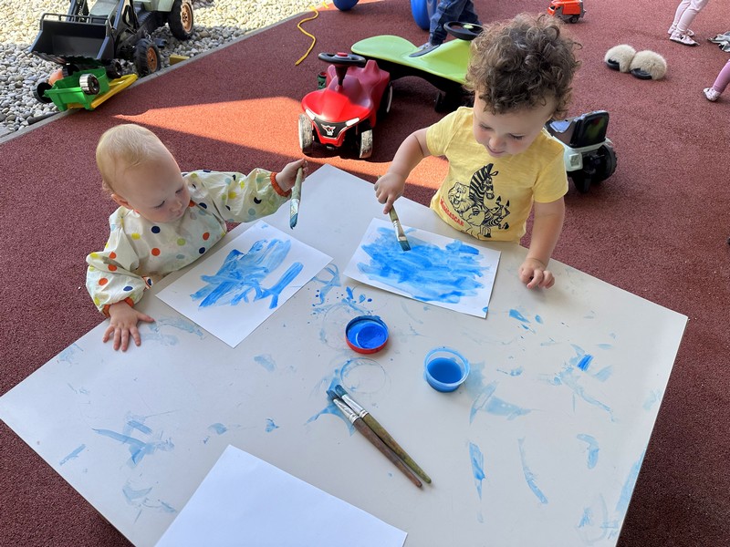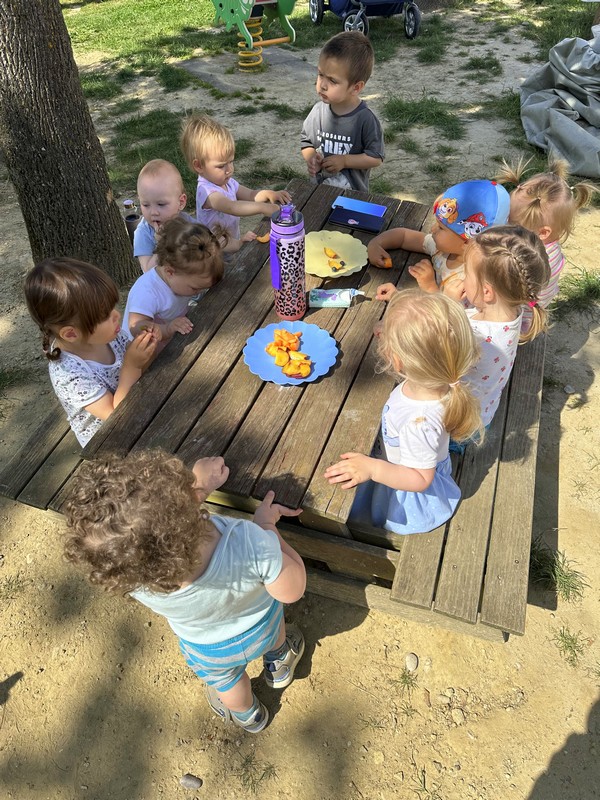 Veliko časa smo preživeli na prostem, saj nas je toplo vreme kar vabilo na igranje na igrišču, tekanje in igro v peskovniku. Velikokrat pa smo s sabo vzeli tudi malico in jo pojedli kar zunaj. Ob tem smo poskrbeli za primerno zaščito pred soncem in izdelali plakat na temo Varno s soncem, ki nam je krasil igralnico, da smo se dnevno spominjali kaj je pomembno v toplih mesecih. Otroci so se naučili kako pomembno je, da veliko pijemo, se zaščitimo s klobuki, očali, sončno kremo in se tudi namazali.