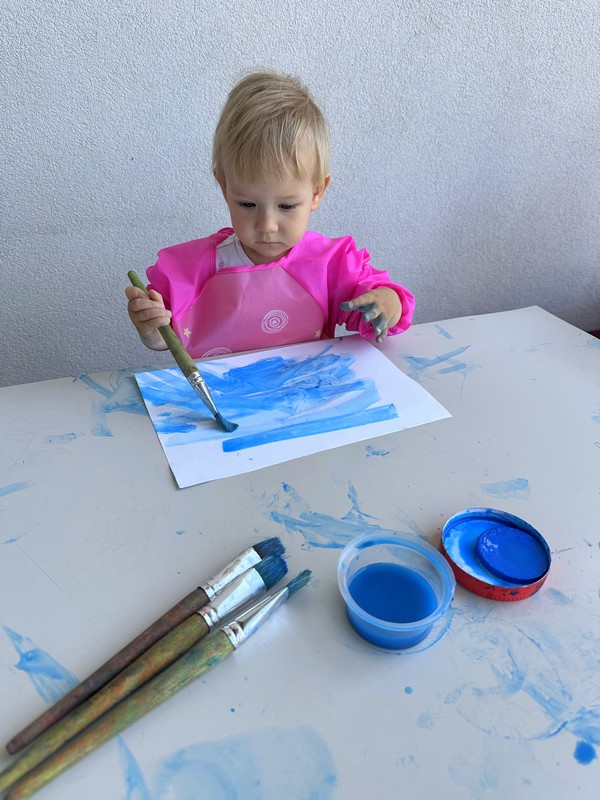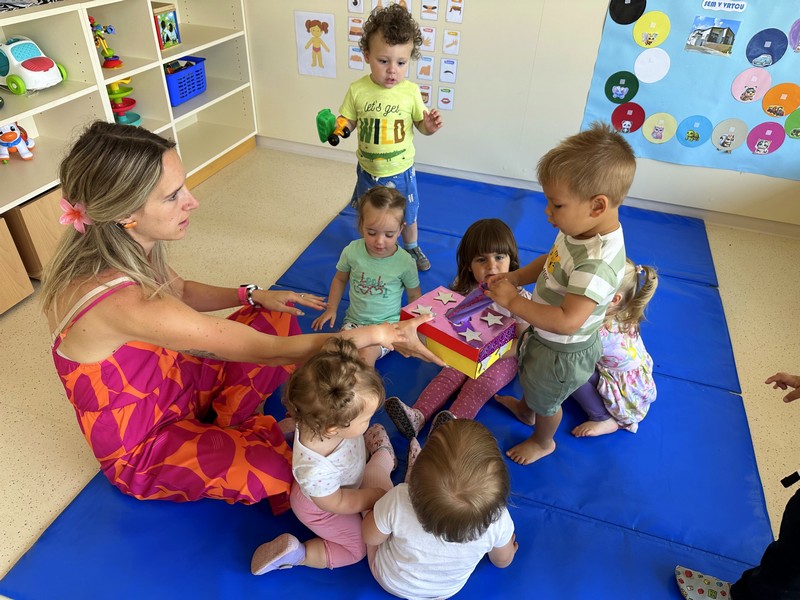 Poskrbeli smo tudi za ustvarjalni kotiček, kjer so nastajali poletni motivi. Izdelovali smo akvarij, barvali ribe, školjke, morje. Igrali smo se s skrivnostno škatlico in ugibali kaj se v njej skriva. Praznovali pa smo tudi dva rojstna dneva. Drugi rojstni dan dečka in prvi rojstni dan naše novinke.