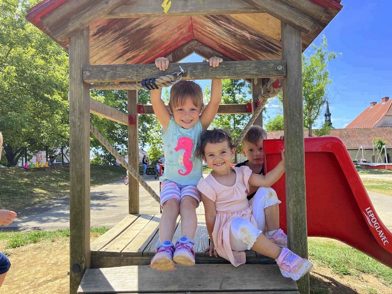 Poletje se je končno začelo kar nam je dalo ogromno dobrih priložnosti za zabavo na svežem zraku. V tem mesecu smo veliko preživeli na igrišču, gozdu in na sprehodih. Praznovali smo tudi tri rojstne dneve in se tudi posladkali.