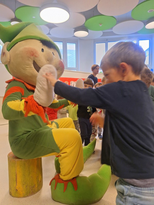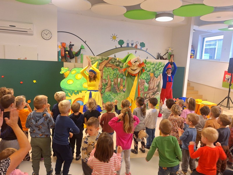 Zavod Enostavno Prijatelji nam je odigral gledališko predstavo Škratek Prijateljček, o najprijaznejšem škratku na svetu, ki rad pomaga in vse ostale uči biti dober.