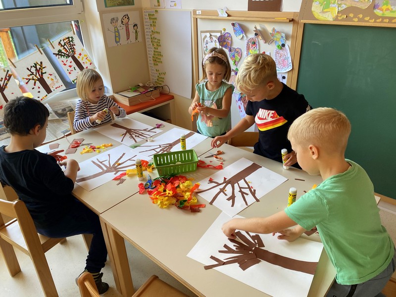 V gozdu smo se igrali z listjem, v igralnici pa ustvarjali jesenska drevesa. Ob sredah nas je obiskovala miška Neli, ki je poskrbela za glasbeno veselje. Telovadili smo, plesali po hodniku in se razveselili obiska škrata Prijateljčka. Obeležili smo tradicionalni slovenski zajtrk, se razveselili snega in prisluhnili knjižničarki Andreji, ki nam je prebrala zgodbo Veliki bučni podvig.