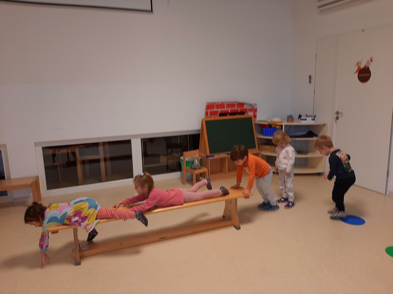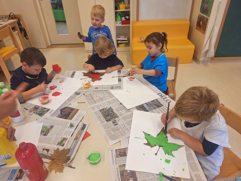 Spoznavali so zdravo hrano, praznovali rojstni dan, opazovali spremembe v gozdu, sadovnjaku in na vrtu ter preizkusili tiskanje z jabolkom in hruško, odtiskovali pa so tudi jesenske liste, ki so jih nabrali v gozdu in na vrtčevskem igrišču. Ogledali so si drevesa v sadovnjaku, na vrtčevskem igrišču in v gozdu in spoznavali jesen. Barve, odtenki, mešanje barv so jesen prinesli tudi v igralnico. Spoznavali so tudi pojem ozimnica. Kamišibaj zgodba Ježevka in hruška je otrokom v vrtcu prinesla dogajanje na robu gozda in jih popeljala v svet prijateljstva in medsebojne pomoči.
