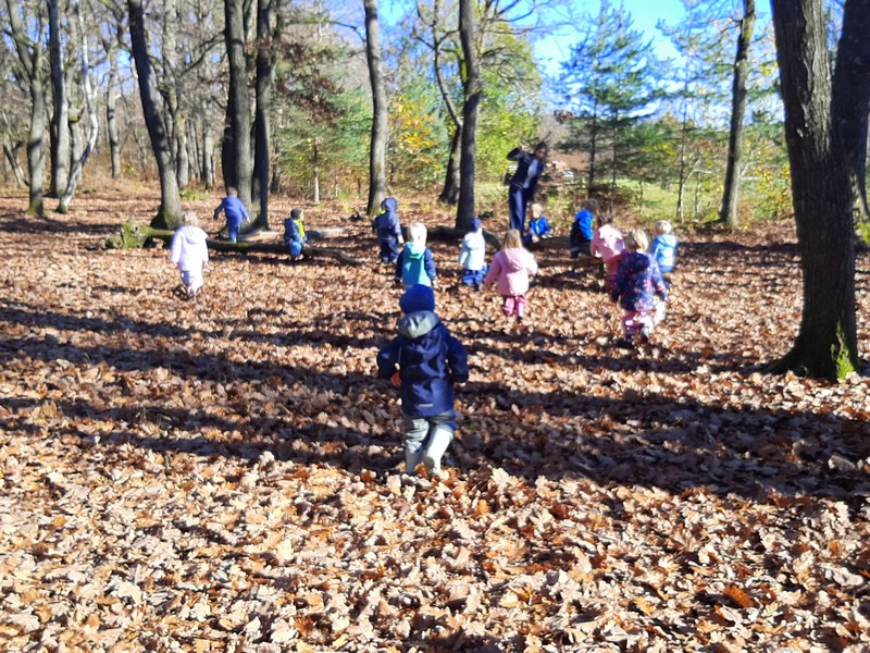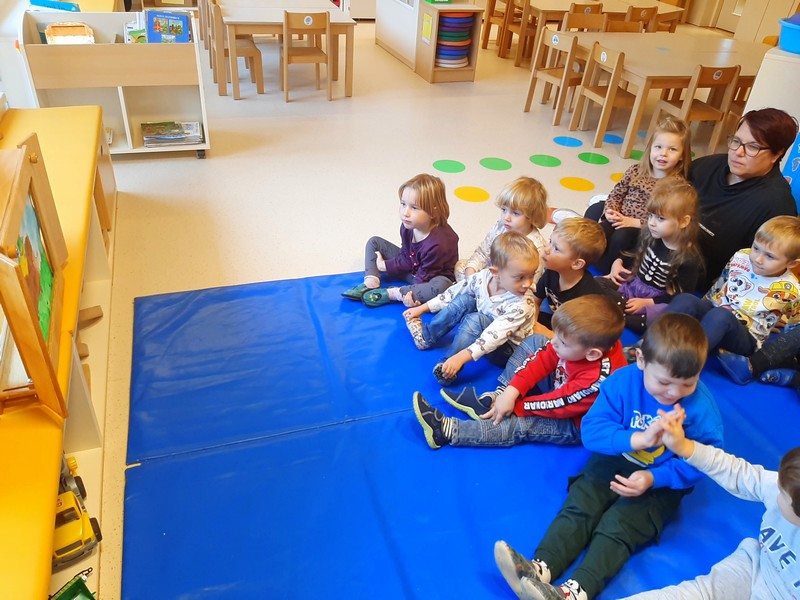Spoznavali so zdravo hrano, praznovali rojstni dan, opazovali spremembe v gozdu, sadovnjaku in na vrtu ter preizkusili tiskanje z jabolkom in hruško, odtiskovali pa so tudi jesenske liste, ki so jih nabrali v gozdu in na vrtčevskem igrišču. Ogledali so si drevesa v sadovnjaku, na vrtčevskem igrišču in v gozdu in spoznavali jesen. Barve, odtenki, mešanje barv so jesen prinesli tudi v igralnico. Spoznavali so tudi pojem ozimnica. Kamišibaj zgodba Ježevka in hruška je otrokom v vrtcu prinesla dogajanje na robu gozda in jih popeljala v svet prijateljstva in medsebojne pomoči.