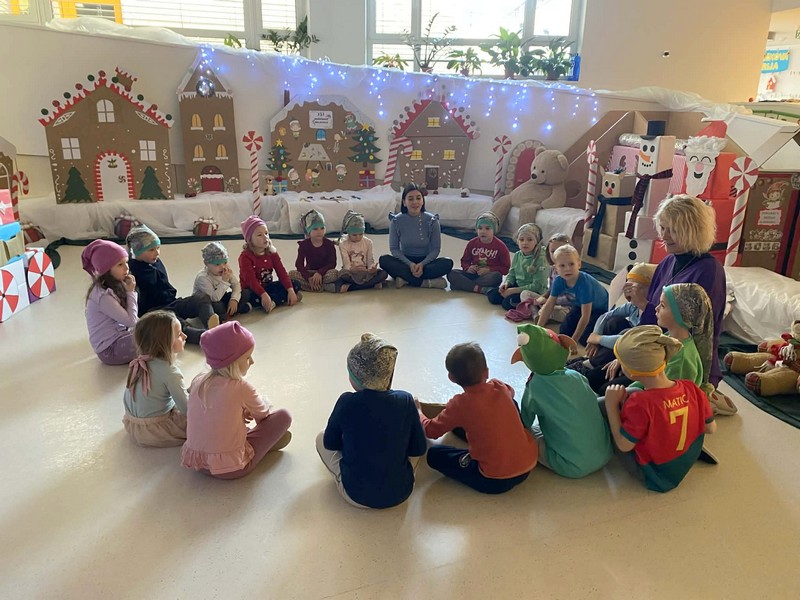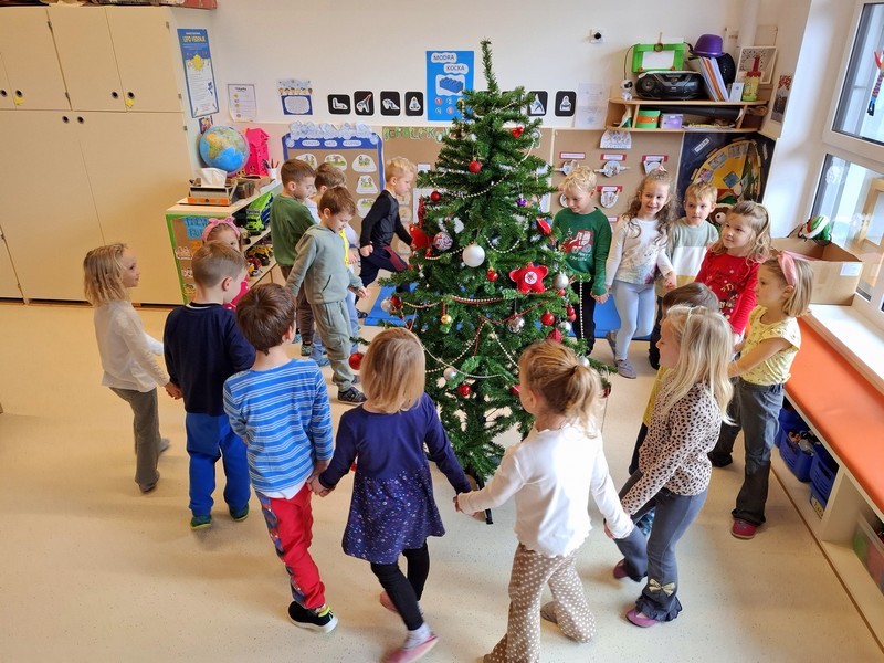 Večkrat smo obiskali tudi našo prelepo škratkovo deželico, kjer smo v tem prazničnem vzdušju rajali, plesali, poslušali zgodbe in peli zimske pesmi.
