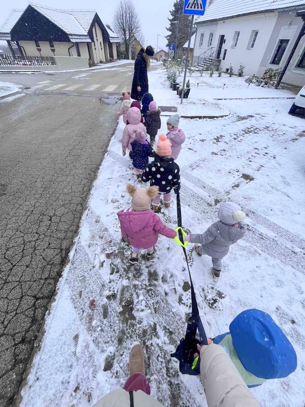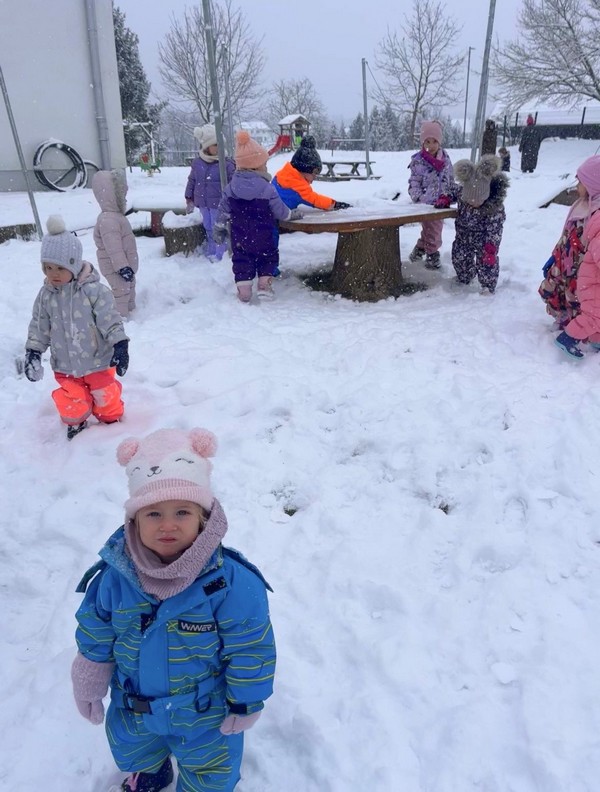 Vsak dan smo nase oblekli kombinezone, obuli snežke, nataknili rokavice in kape ter se odpravili na sneg. Nekatere dni smo bili na igrišču, druge pa se sprehajali.