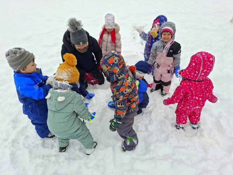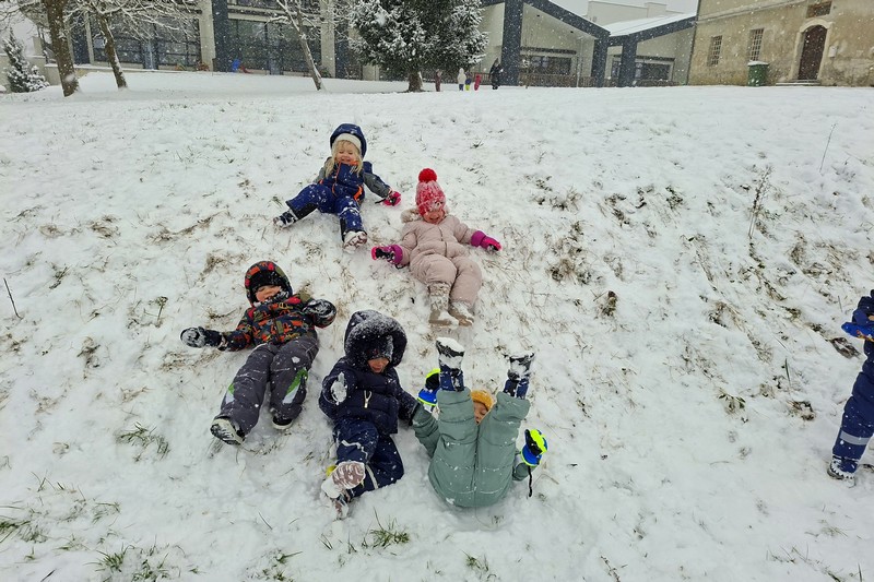 V začetku meseca nas je narava razveselila s snežno odejo, v katero so se eni bolj, drugi manj navdušeno zapodili. Otroci so se kepali, dričali in kotalili po bregu, delali stopinje in angelčke v snegu ter skušali izdelati snežaka, a sipek sneg tega ni dopuščal.