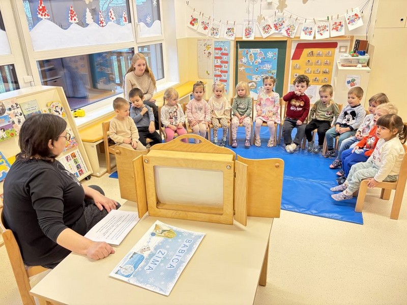 Plezalčki so pogumno sodelovali pri pripovedovanju pravljic Babica Zima in Rokavička, ki sta jih vodili vzgojiteljici skozi kamišibaj predstavo. Tudi z lutkami so se spoprijateljili v zimski lutkovni predstavi o prijateljstvu, ki jo je pripravila vzgojiteljica Nataša. Nekoliko zadržani – ups, začarani pa so bili v skupnem prostoru ob čarovnijah čarodeja Andreja.