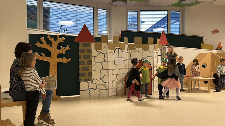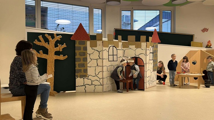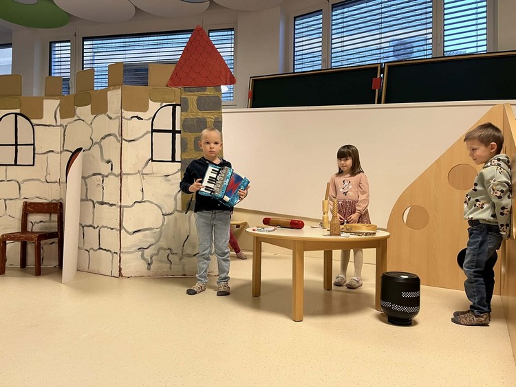 Iz gozda in piskrčka pa smo se preselili tudi v grad. No, pravzaprav NAVIHANČKI. Skozi igro, gib in glasbo so oživili glasbeno pravljico Grad gradiček, kjer so pokazali veliko ustvarjalnosti in poguma. Nekateri otroci so prevzeli vlogo živali, ki so želele živeti v gradu, drugi pa so s preprostimi ritmi dogajanje spremljali z igranjem na Orffove inštrumente ter tako poskrbeli za glasbeno obogatitev zgodbe.