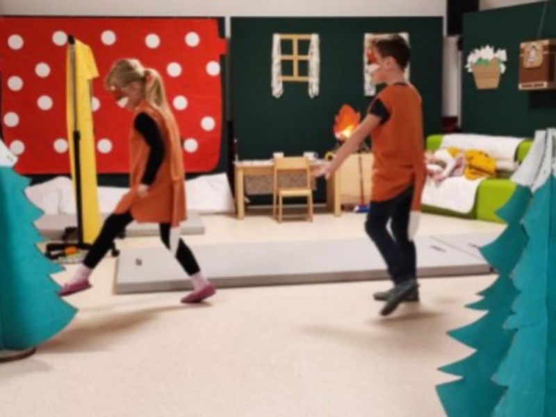 Ker je februar prinesel tudi snežinke, je bila pravljica o izgubljeni rokavički pravšnja za branje in podoživljanje zgodbe. Tako so se CEPETAVČKI odločili, da vzamejo v roke čopič, naredijo sceno, si izdelajo naglavne maske, izberejo vloge po pravljici, oblečejo kostume in vadijo za dramatizacijo.