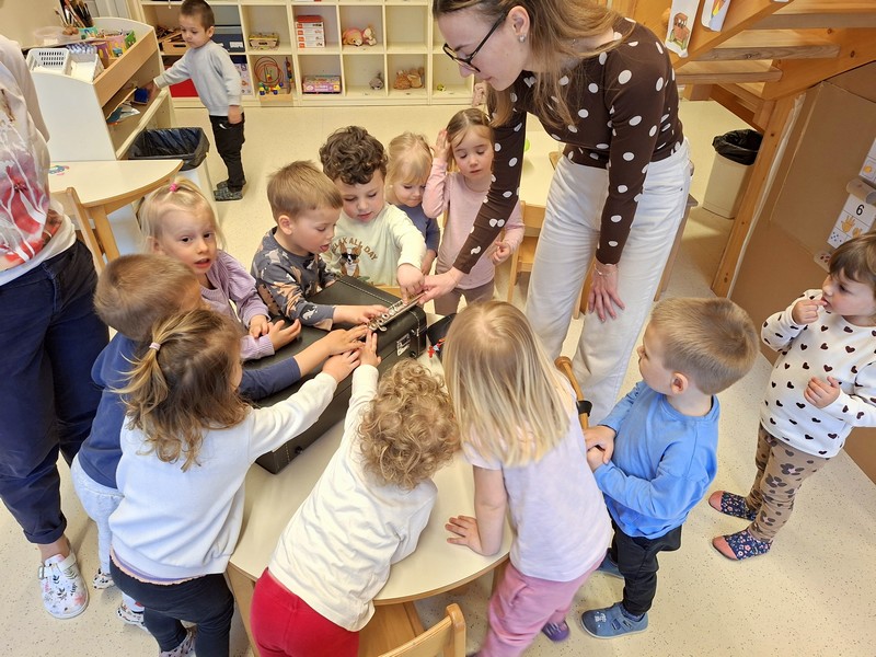 Da bi pregnali vetrovne in zasnežene dni ter prebudili pomladno razpoloženje, nas je obiskala mlada glasbenica Tina in nam na flavto zaigrala nežne melodije. Glasba je ustvarila prijetno in umirjeno vzdušje, otroci pa so ob spoznavanju instrumentov ugotavljali, da imajo tudi vzgojiteljice svoje družine in talente, ki jih z veseljem delijo z njimi.