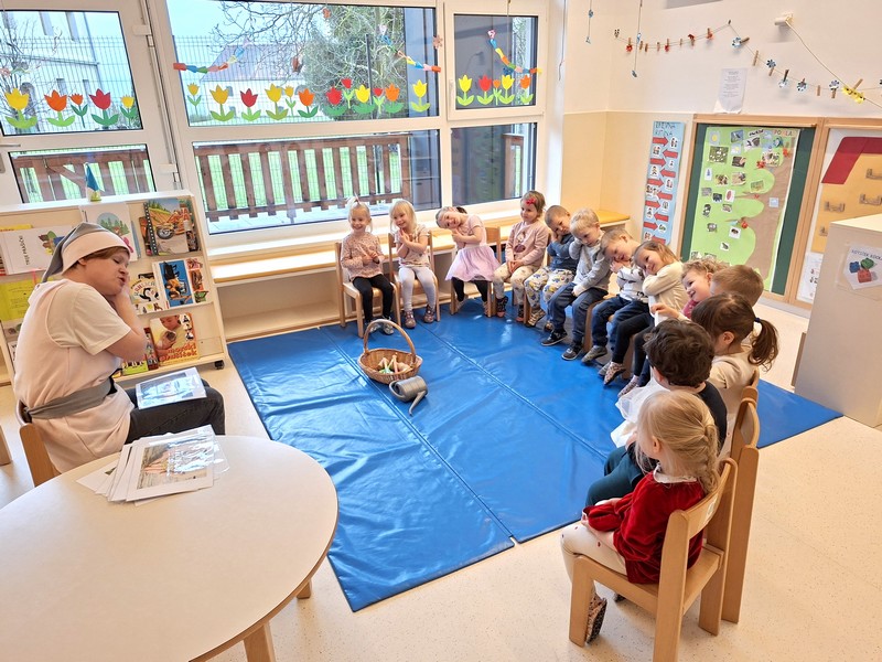 Plezalčki z vzgojiteljicama Špelo in Suzano z radovednostjo opazujemo prve cvetlice, poslušamo ptičje petje in se veselimo prihajajočih velikonočnih dni, ki bodo v igralnico prinesli nove barve, pisane pirhe ter prijetne trenutke skupnega ustvarjanja.