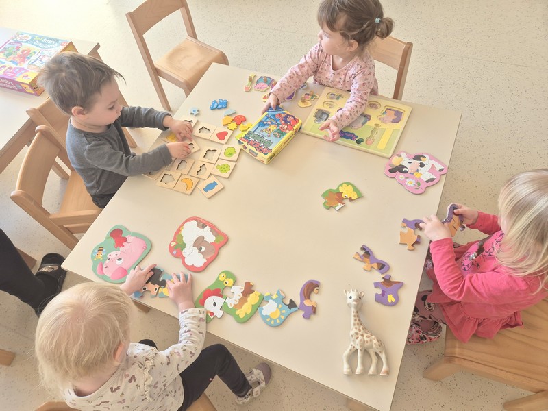 Veliko časa smo namenili sestavljanju in igranju namiznih iger, ob katerih otroci zelo uživajo, ter hkrati razvijajo svoje miselne sposobnosti. Vsak teden smo se odpravili tudi v gozd, kjer smo raziskovali naravo, opazovali okolico in krepili svoje telo z gibanjem po razgibanem terenu.