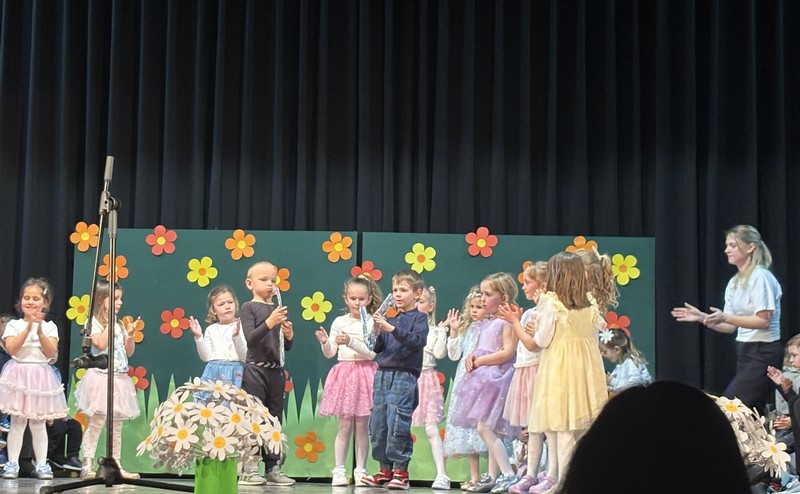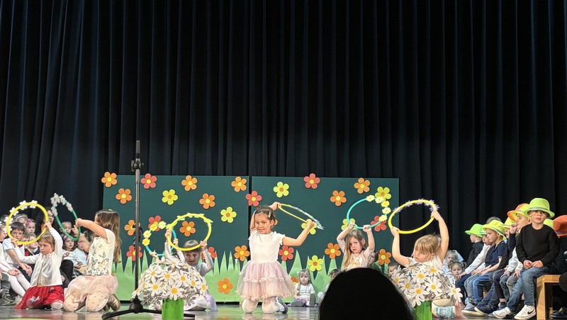 Od najmlajših "Sončkov", ki so s preprostimi gibi očarali vse v dvorani, do »Ringarajčkov«, ki so pogumno zaplesali ob pesmicah o pomladi in tudi vsak s svojim plišastim medvedkom.