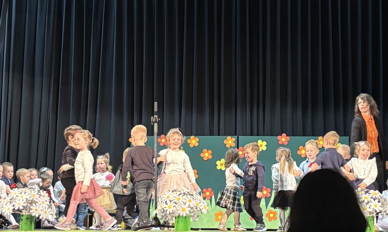 Otroci iz skupine Plezalčkov pa so se s plesom zavrteli ob barvnih listih, pesmici o mamici in z deklamacijo Ti si moja sreča. Navihančki so se zavrteli ob dveh pesmicah o pomladi in sončnem dnevu ter zapeli ob spremljavi kitare Klobučki sreče in Jaz pa grem na zeleno travco.
