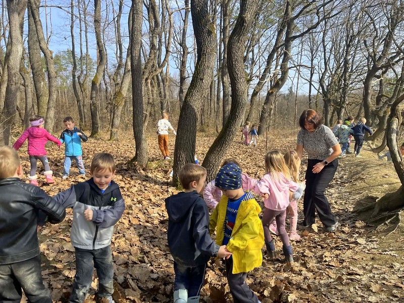 V mesecu marcu smo ob toplem soncu radi zakorakali v gozd, kjer smo plesali in se učili nove pesmi.