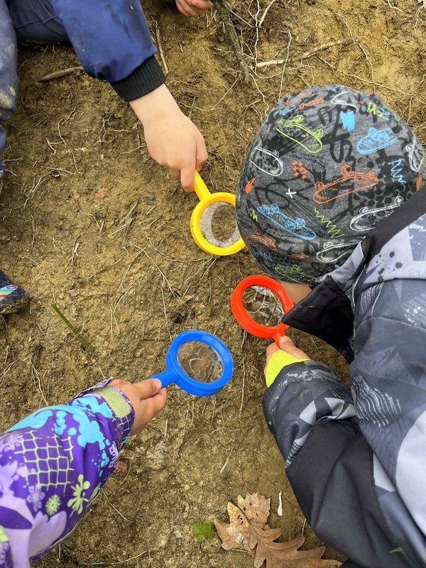 Izvajali smo gibalno-matematične igre v skupnem prostoru in kasneje v mesecu spoznavali travniško življenje s pomočjo slikanic in povečevalnih stekel.