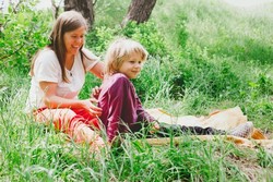 Otroku v naravi pripovedujemo kratko zgodbo. Ob tem se udobno vsedemo na tla in pričnemo z masažo: